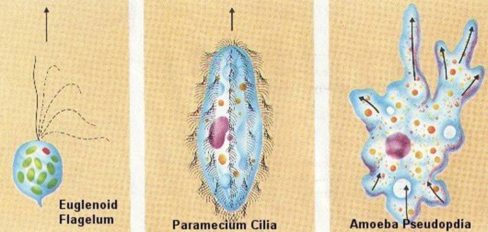 1. sejtszervecskékkel való mozgás - egysejtűeknél (véglényeknél):