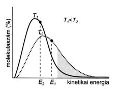 * a gázmolekulák sebességét és kinetikai energiáját a gáz hömérséklete szabja meg, a kinetikai energia (Ek) a következö képlettel írható le,