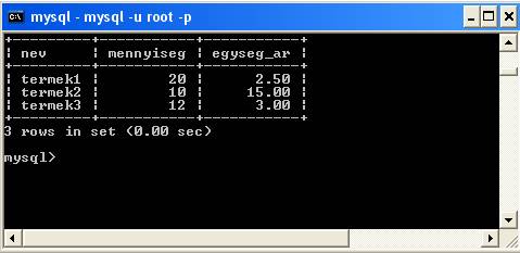 Mindenik termékre, amelyröl vannak adatok az adtok táblában írjuk ki a nevét és a mennyiségét.
