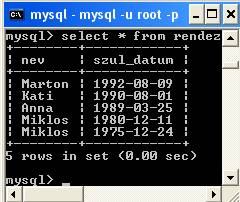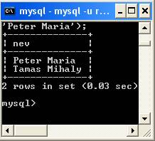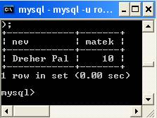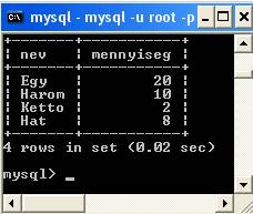 paranccsal hozunk létre. Ha már létezik ilyen nevü adatbázis, akkor hibaüzenetet kapunk és az adatbázis nem jön létre.