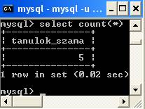 Ha COUNT(*)-ként használjuk, a tábla bejegyzéseinek számát téríti. Ha COUNT(oszlopneve)-ként használjuk, akkor az illetö oszlop NULL-tól különbözö értékeinek számát adja vissza. |