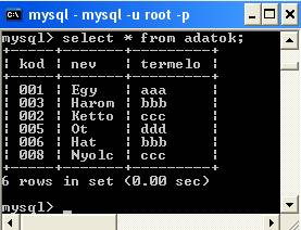 Feladat: Vegyük a termékek és az adatok táblákat ahol a termékek táblának két oszlopa van a kód és a mennyiség, míg az adatok táblának három oszlopa van a kód a név és a termelö. Természetesen a két tábla közötti kapcsolatot a kód oszlop adja. Vagyis ha megadjuk egy termék kódját a termékek táblából az illetö termék mennyisége mellett elérhetö a termék neve és a termelö az adatok táblából.