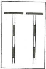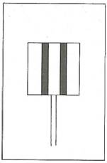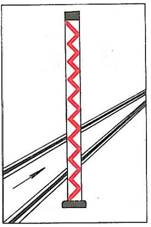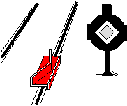 Függőleges fehér téglalap, mely a vágánytengellyel párhuzamosan van.