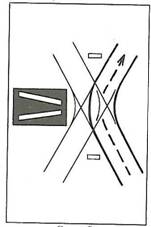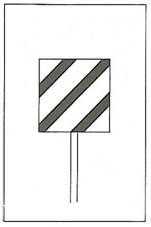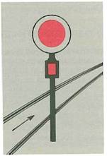A váltó bal kitérő irányba áll - fekete alapon két, egyik végén összetartó fehér téglalap a kitérés irányába. (23. ábra)