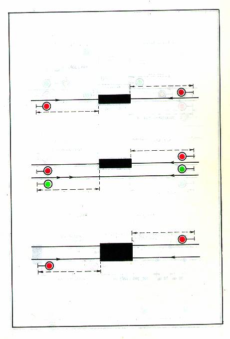 2.2. &n 515j94f bsp; &n 515j94f bsp; A fekete-fehér sávozású főjelző nem ad előjelzést a következő főjelzőre, amíg a vörös-fehér sávozású főjelző előjelzést ad a következő főjelzőre.