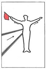 4.4.1. Megállj! [nappal egy jelzőkar vízszintesen amint az árboctól jobbra, (11. ábra), sötétben vörös fény (12. ábra)]