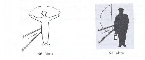4.4.2. Szabad! [nappal egy jelzőkar az árboctól rézsútosan felfelé (13. ábra), sötétben egy zöld fény (14. ábra)].