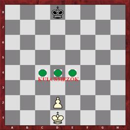 Ebben az esetben a kulcsmezők megduplázódnak. Már nem csak a gyalogtól számított második sorba helyezkednek el a kulcsmezők, hanem közvetlen a gyalog előtti sorban is, ahogy a diagram mutatja. Itt is ugyanaz a szabály érvényes, mint az előző esetben. Amennyiben a megadott három kulcsmező valamelyikén áll a világos király a gyalog bevihető függetlenül attól, hogy ki van lépésen.