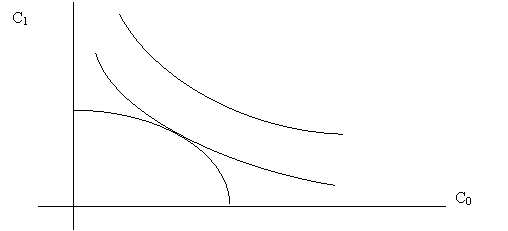 Az elemzési keret a fogyasztás beosztása (allokálása) a jelen (C0) és a jövö (C1) között.