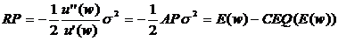 6. Ábra. Kockázatkerülö befektetö biztonságos egyenértékese (CEQ) és kockázati prémiuma (RP)