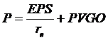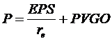 Ez a képlet azt mutatja, hogy a részvényárfolyam egyik részét az EPS-en keresztül a vállalati eredmények (nyereség) befolyásolja, másik összetevöje pedig az úgynevezett növekedési lehetöségek jelenértéke (PVGO). Ha az elsö összetevö nagyobb, akkor érték-részvényröl ("value stock") beszélünk, ha pedig a második, akkor "növekedési" részvényröl ("growth stock").