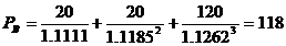 Az A kötvény névleges kamatlába 10%, a B kötvényé 20% (3 év lejáratúak) és ismertek a következö elemi kötvényárfolyamok: P1=0,9, P2=0,8, P3=0,7. Melyik kötvényt vásárolná meg, ha bizonytalan irányú de jelentös kamatláb-változásra számít?